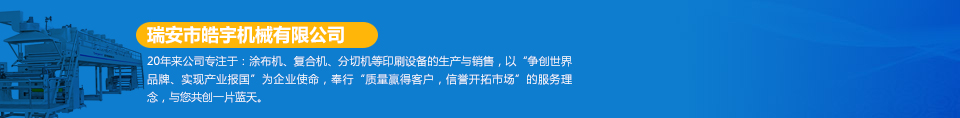 瑞安市皓宇機(jī)械有限公司是瑞安一家私營(yíng)責(zé)任有限公司,注冊(cè)資金200萬,員工40余人,是具有獨(dú)立法人地位,專業(yè)生產(chǎn)定做各種非標(biāo)準(zhǔn)涂布機(jī)、復(fù)合機(jī)、印刷機(jī)、分切機(jī)、壓膜機(jī)等機(jī)械設(shè)備的制造廠。公司的機(jī)器主要用于生產(chǎn)保護(hù)膜、膠帶、雙面膠、不干膠、相紙、油畫布、汽車防爆膜、熱轉(zhuǎn)印、燙金膜、離型膜、離型紙、軟包裝印刷、軟包裝復(fù)合、軟包裝分切等各種產(chǎn)品...  [詳細(xì)]